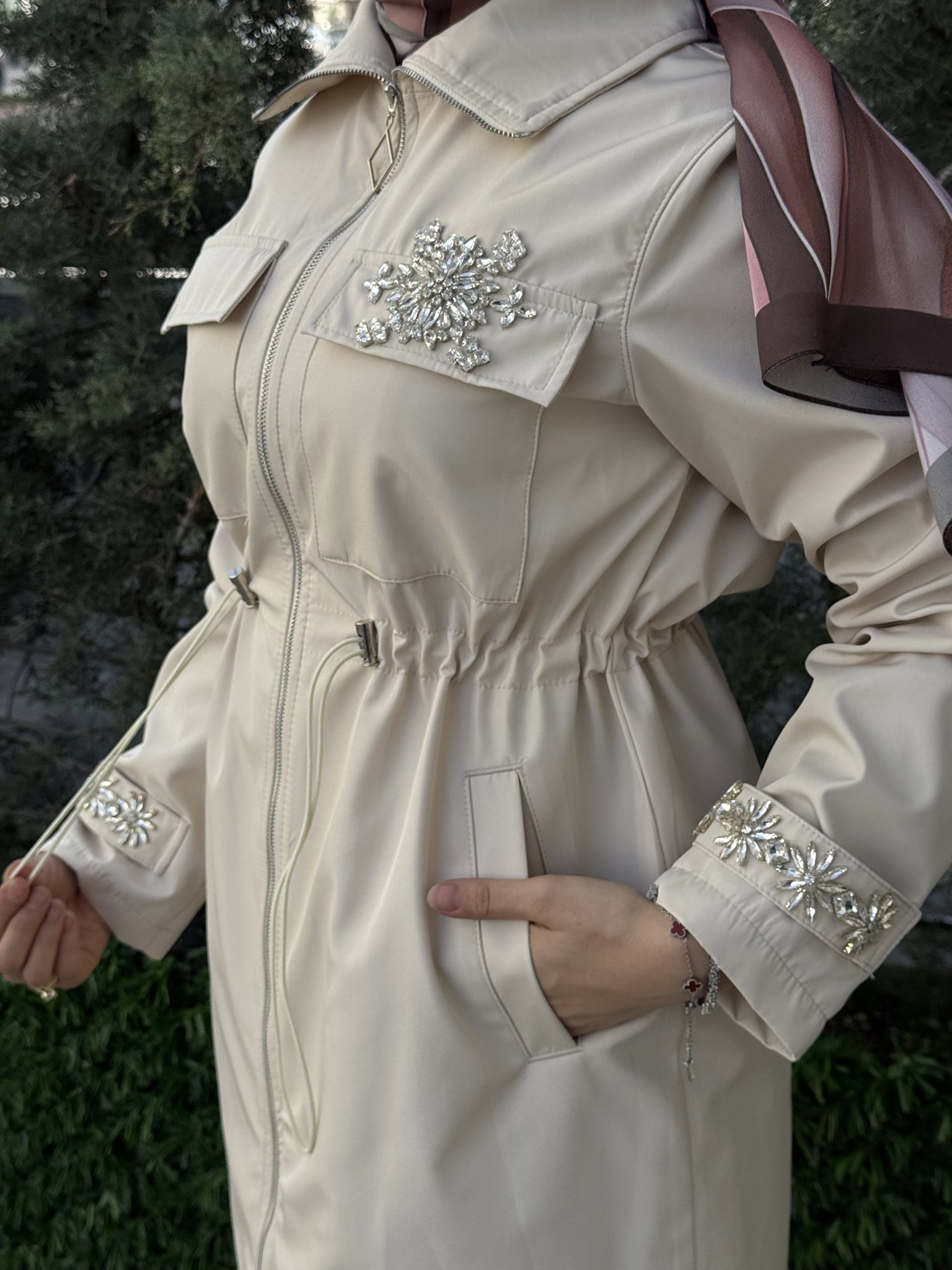 Değerlendirmeler Değerlendirmeler Bu ürünü ilk değerlendiren siz olun Henüz değerlendirme yapılmadı. Ürün etiketleri YAKASI VE KOLLARI TAŞ DETAY TRENÇ / KAP FERMUARLI VE İÇ ASTALDIR BELDE AYARLANABİLİR BÜZME DETAY MEVCUTTUR RAHAT KALIPTIR BOY : 90 CM 1