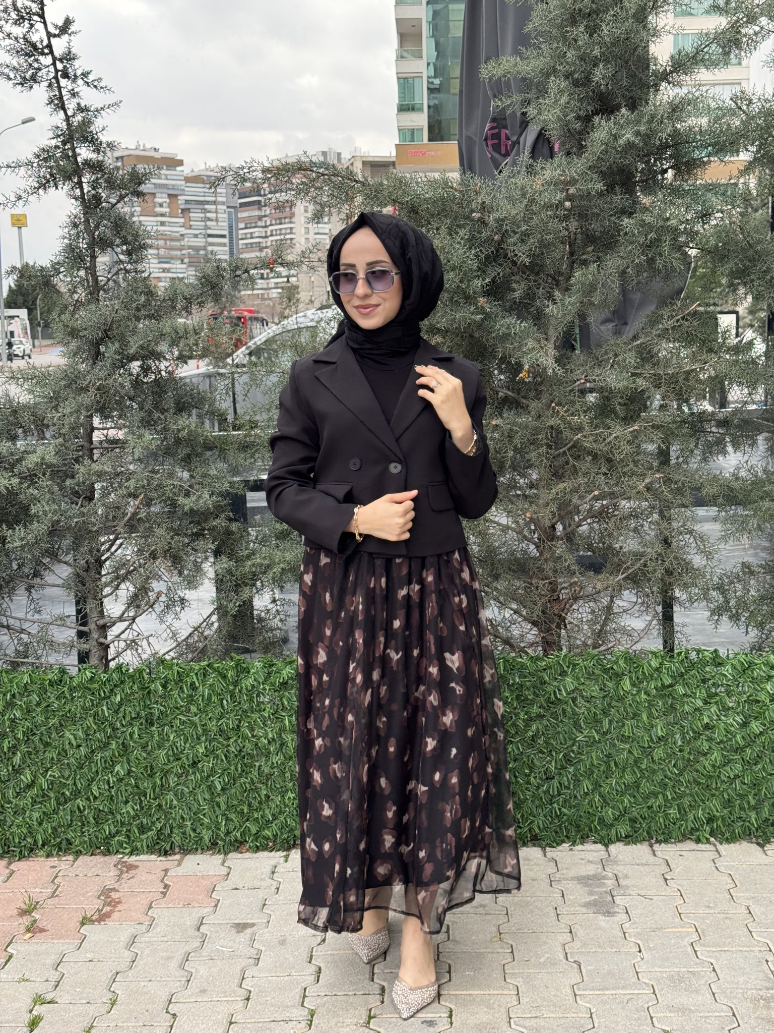 Değerlendirmeler Değerlendirmeler Bu ürünü ilk değerlendiren siz olun Henüz değerlendirme yapılmadı. Ürün etiketleri BLAZER CEKETLİ ETEKLİ TAKIM BLAZER CEKET OMUZ VATKALIDIR ÜST ASTARLIDIR BROŞ DETAYI MEVCUTTUR CEP GÖRÜNÜMÜ MEVUTTUR İKİ DÜĞMELİDİR ETEĞİ ŞİFON KUMAŞTIR ETEK ASTARLIDIR ETEK LEOPAR DESENLİDİR TAM KALIPTIR ÜST BOY : 52 CM ALT BOY : 91 CM 1