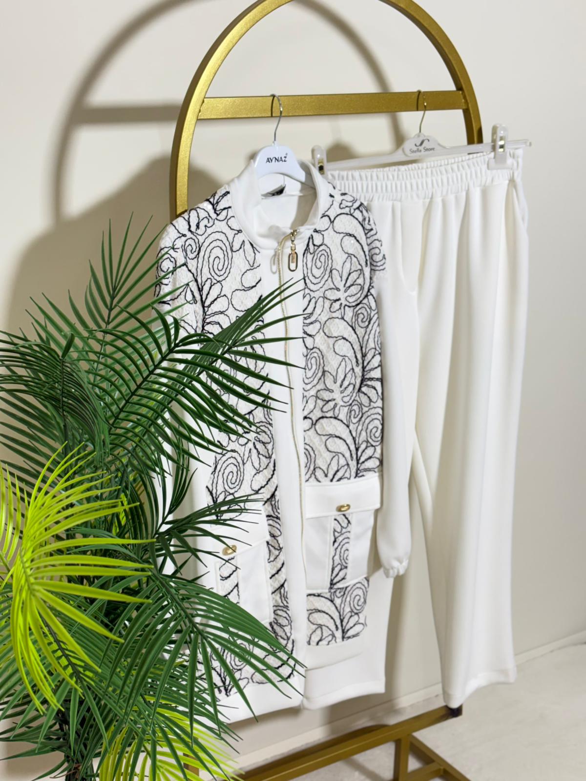CEKETİ ÖN VE ARKA NAKIŞ İŞLEME DETAYLI PANTOLONLU TAKIM