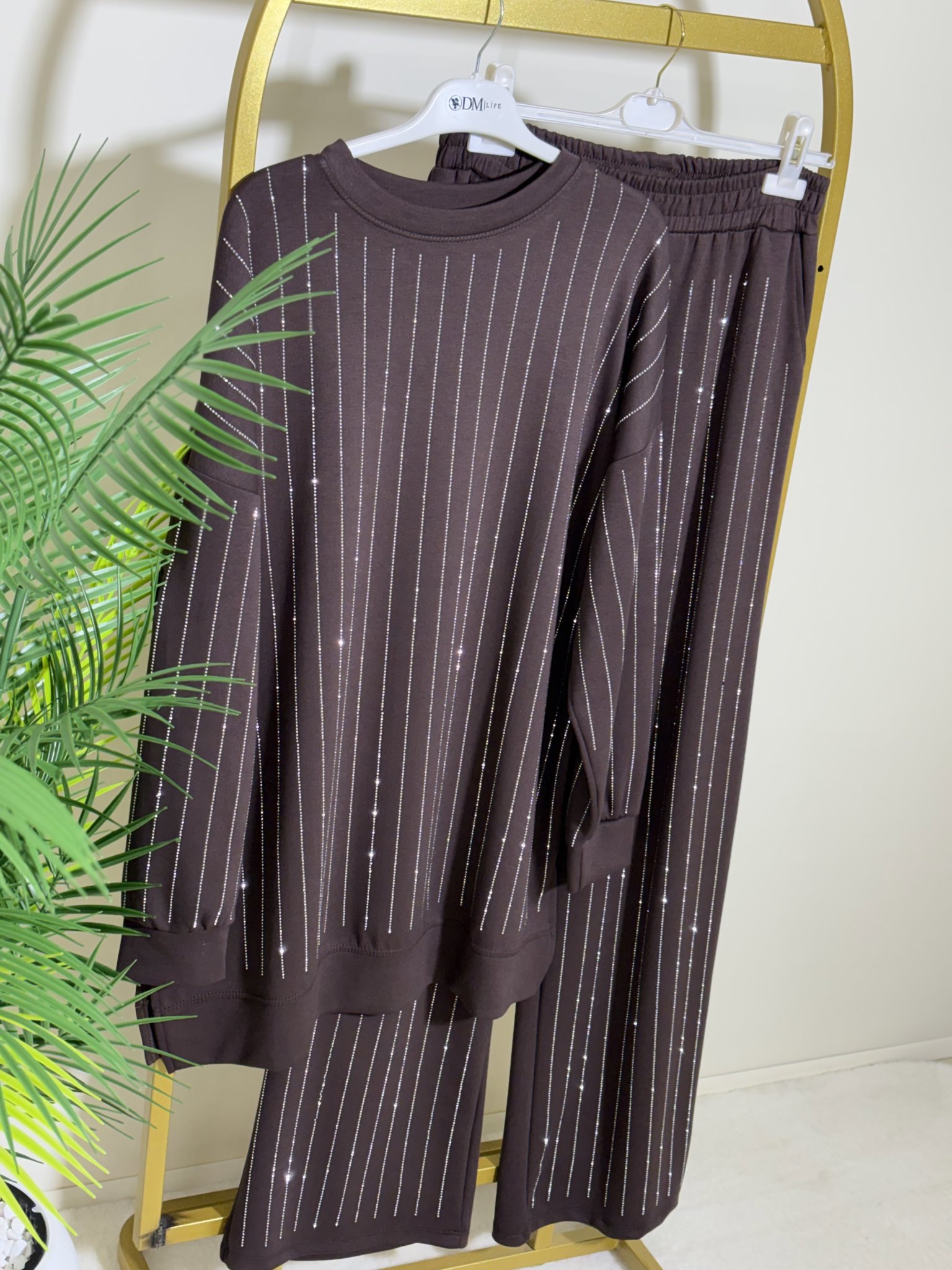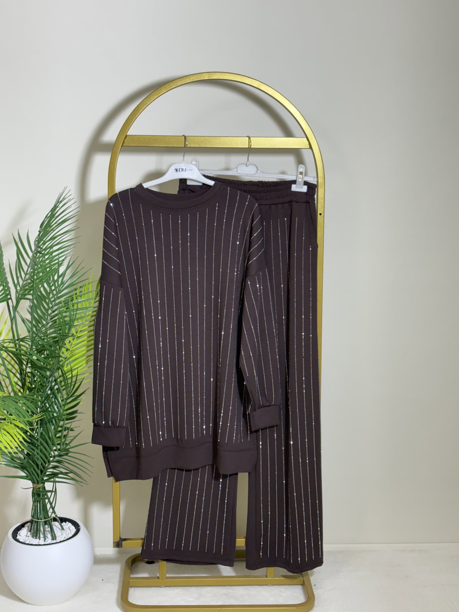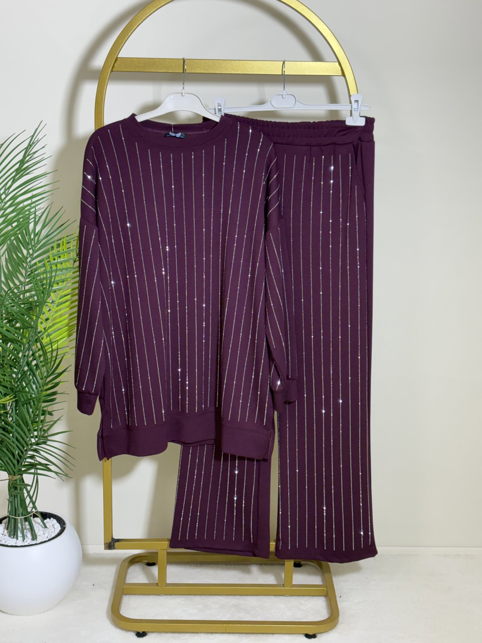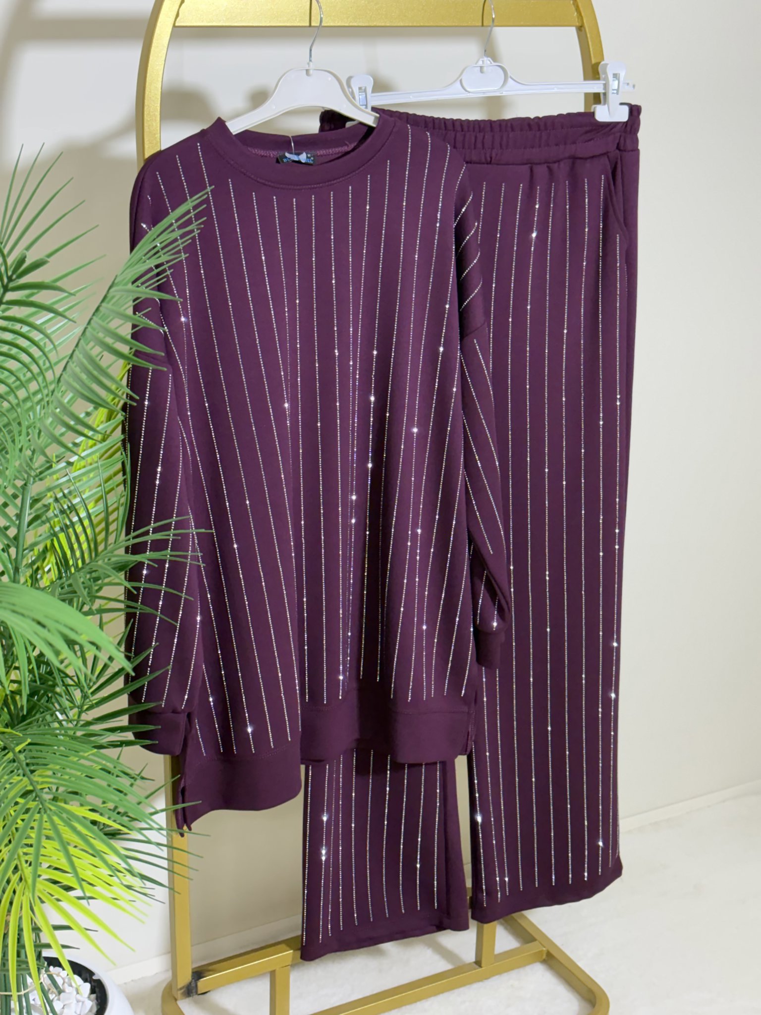ÇİZGİ TAŞLI OYSHO KUMAŞ PANTOLONLU TAKIM