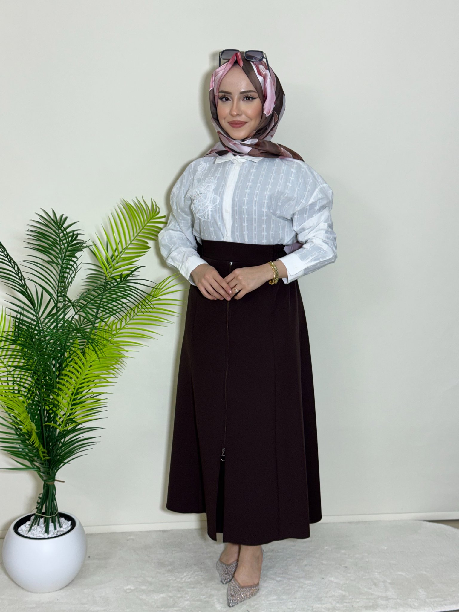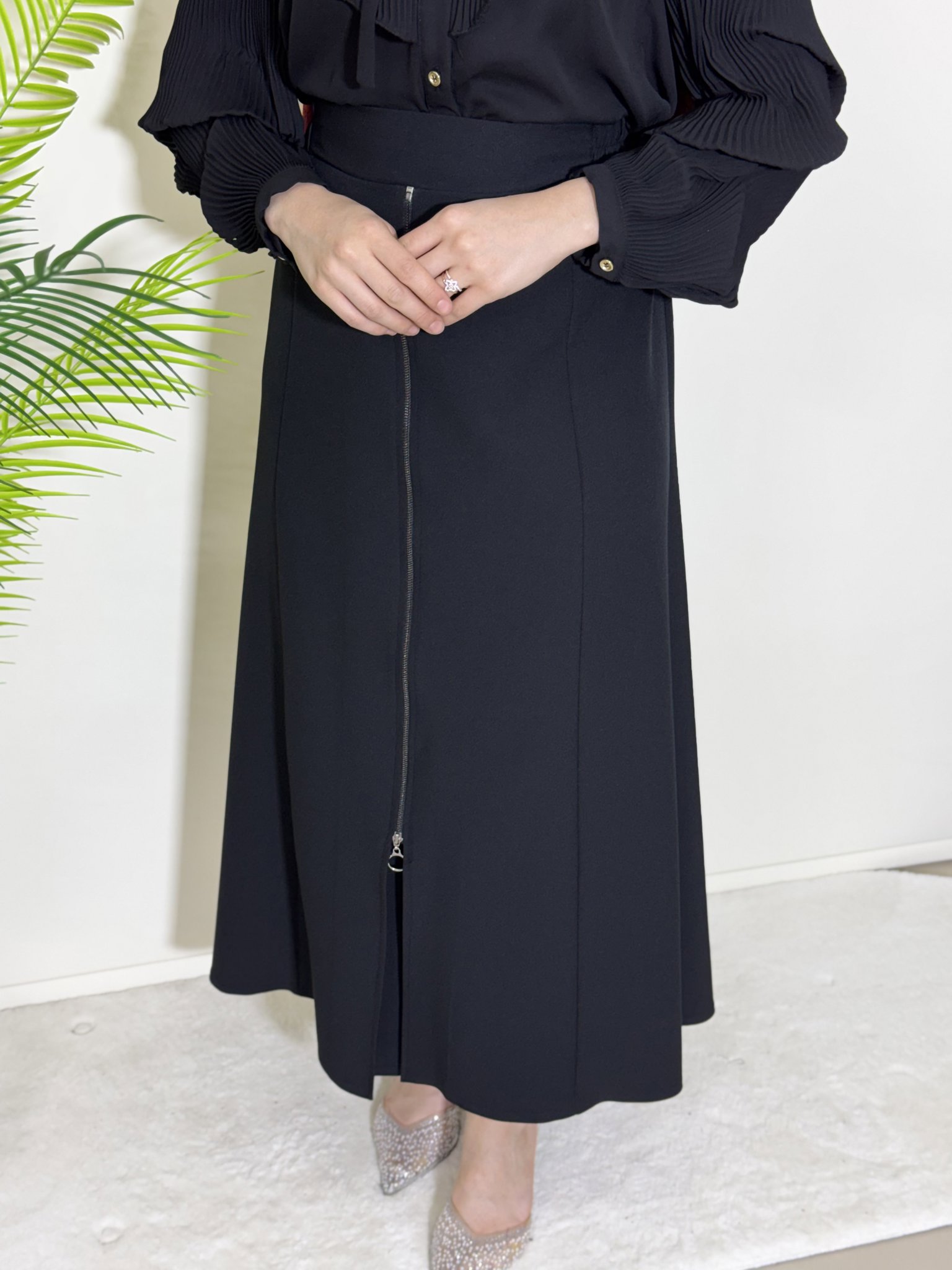 DABIL KUMAŞ ÖNÜ FERMUAR DETAY ETEK