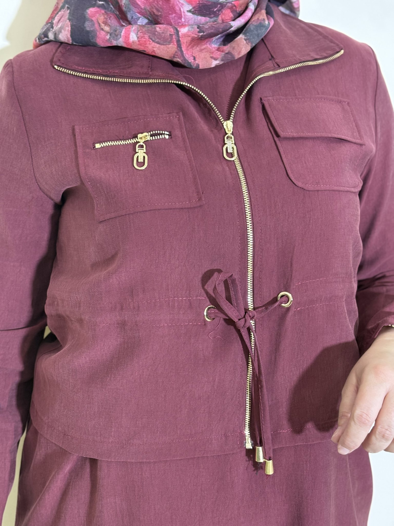 CEKET BELİNDE AYARLANABİLİR SIKIŞTIRMA DETAYI BULUNUR.