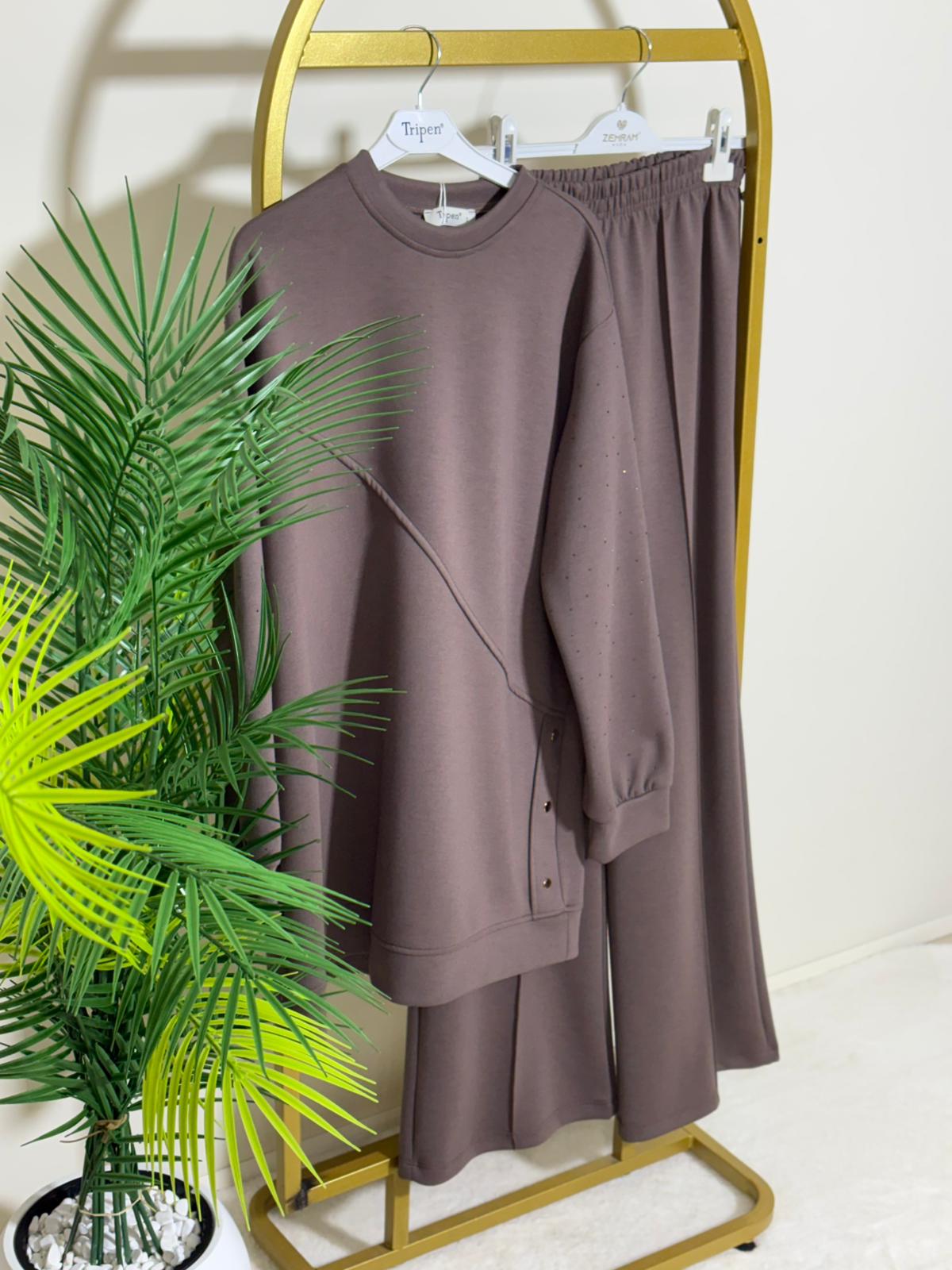 KOLLARI TAŞ DETAY BASIC PANTOLONLU TAKIM