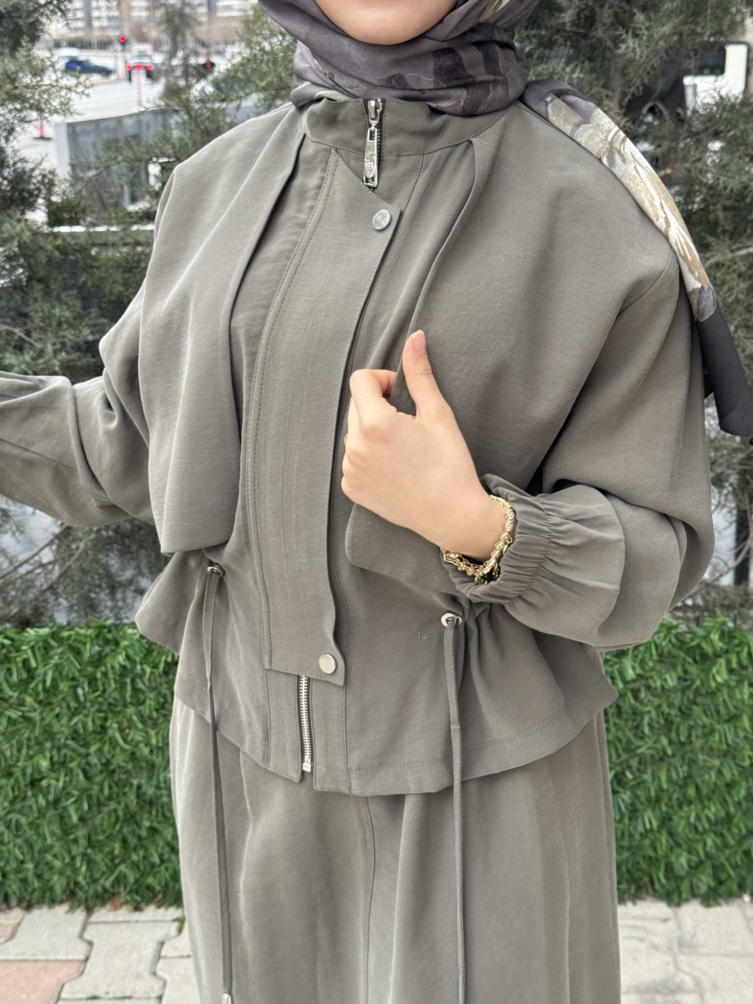 ÇİFT FERMUAR DETAY PARAŞÜT KUMAŞ CEKET