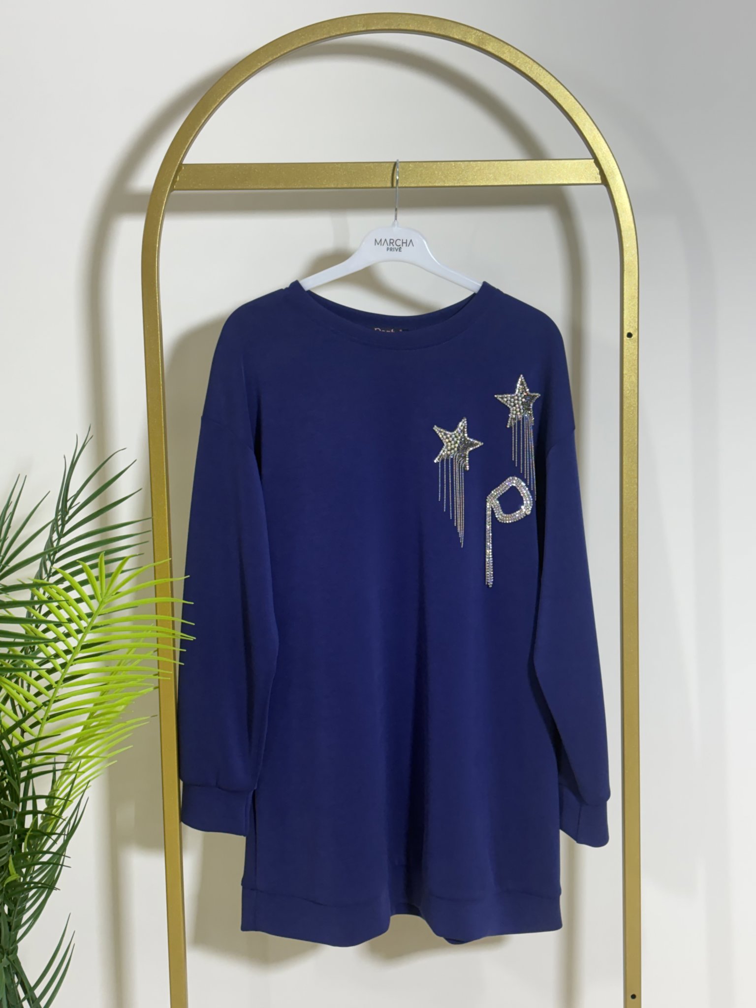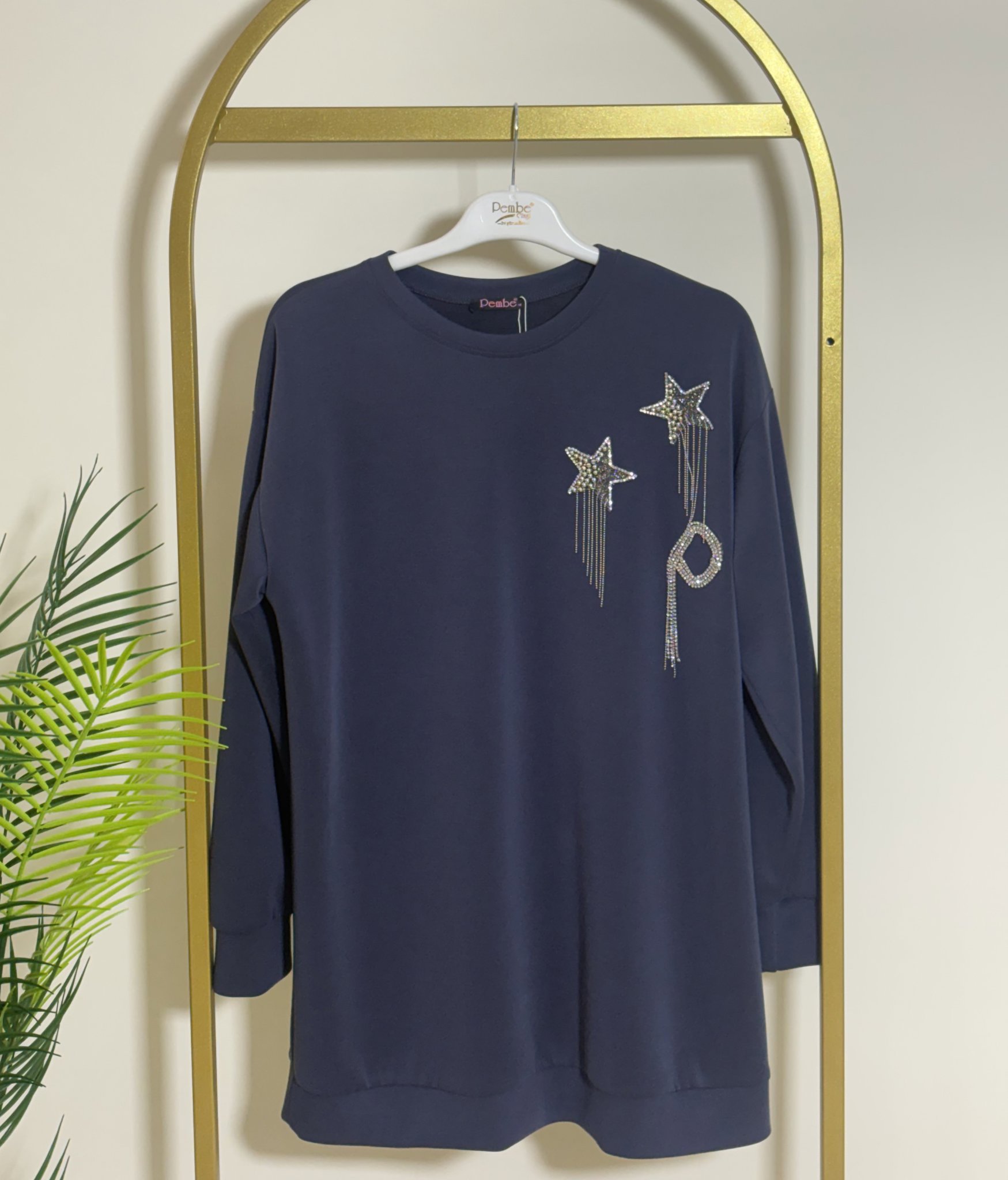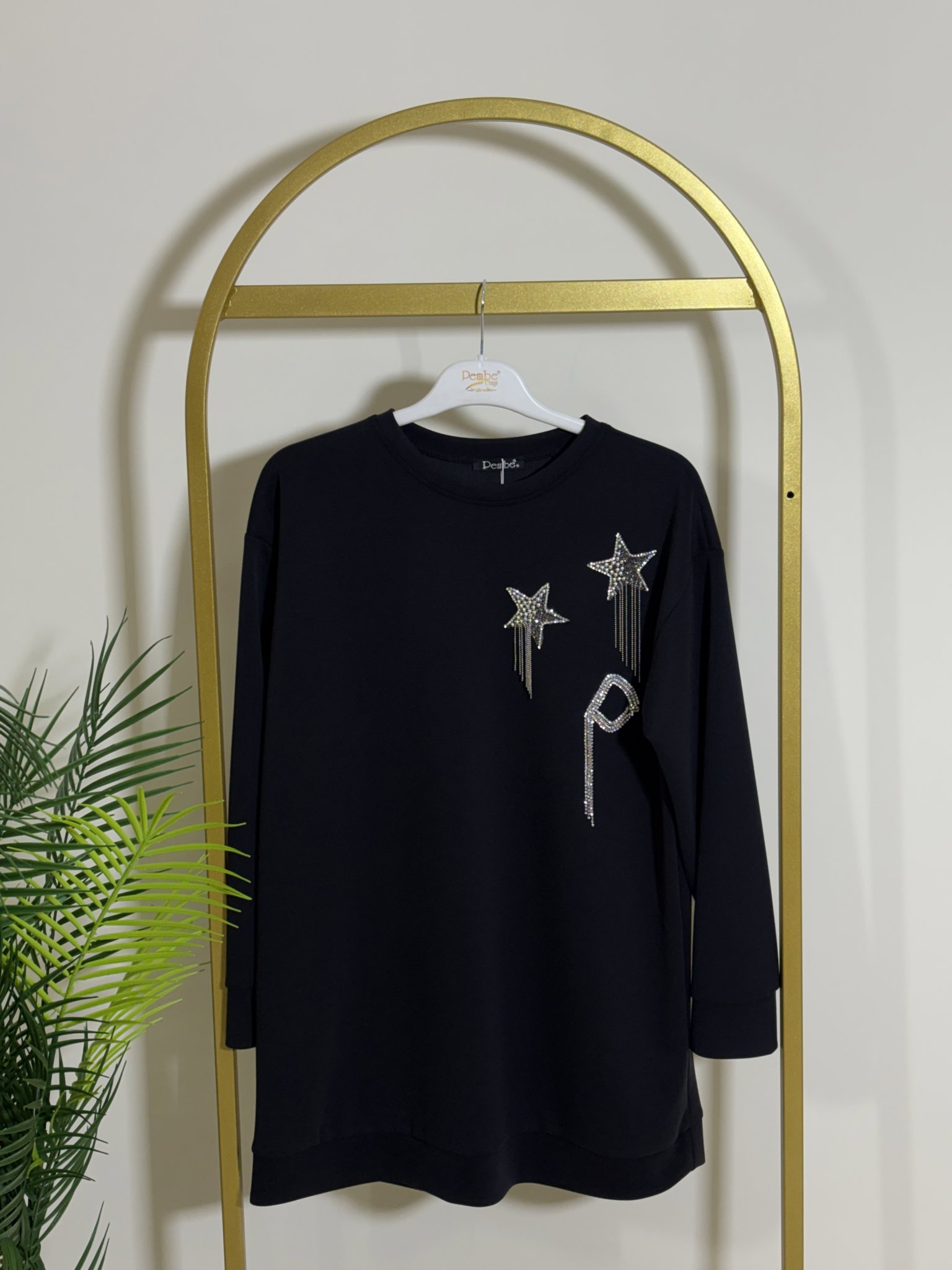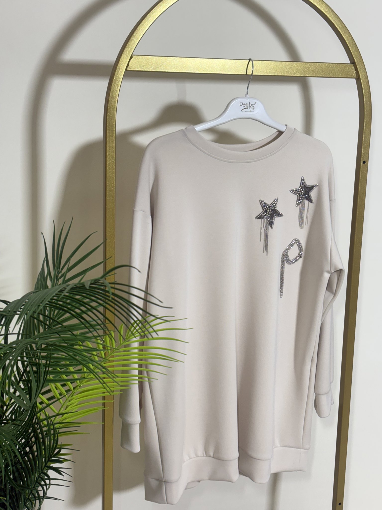 MODAL OYSHO KUMAŞ YAKASI YILDIZ DETAY TAŞ İŞLEMELİ TUNİK