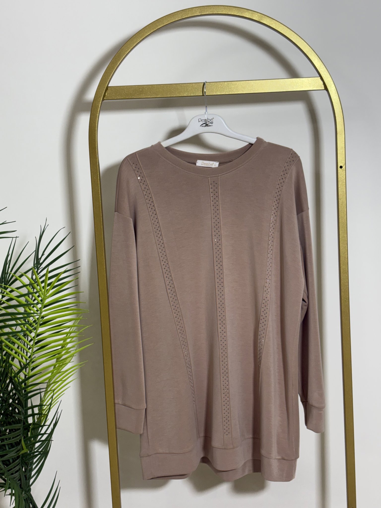 MODAL OYSHO ŞERİT TAŞ DETAY BASIC TUNİK