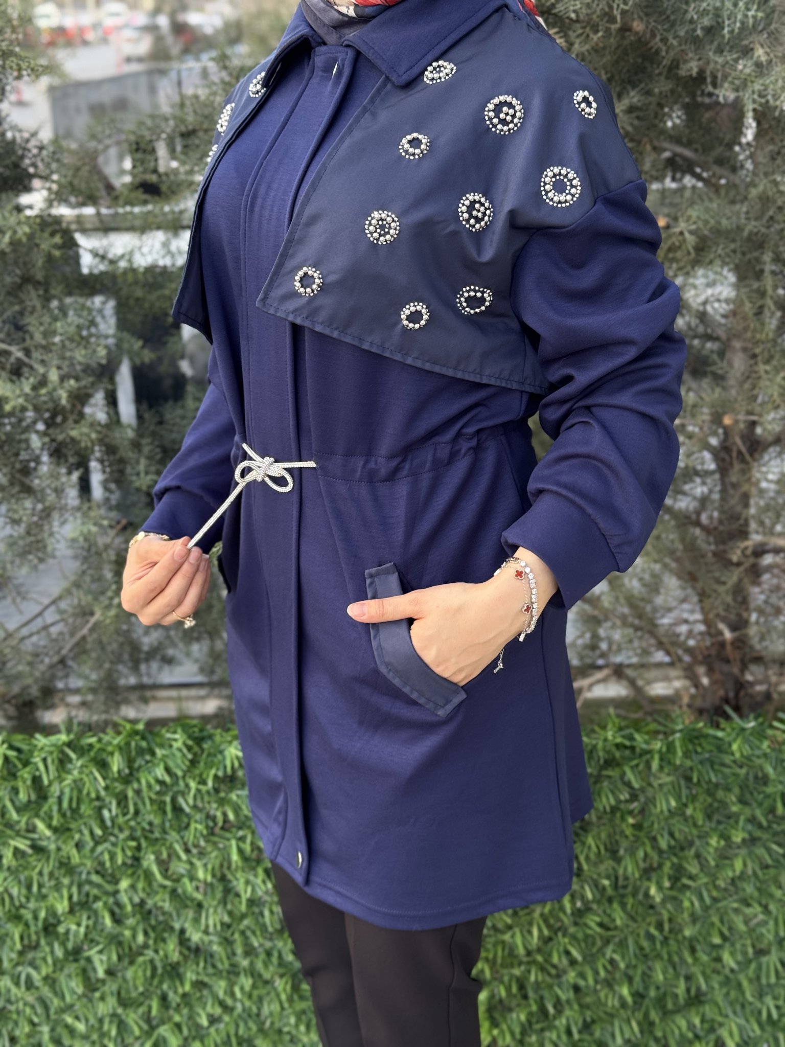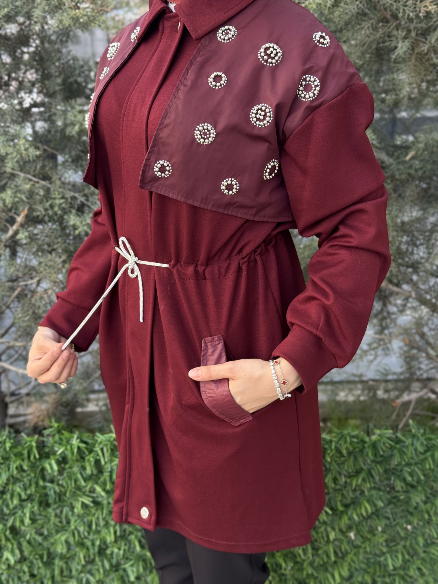 HEVES MODAL CUPRA BEL BAĞLAMA DETAYLI BASİC PANTOLONLU TAKIM
