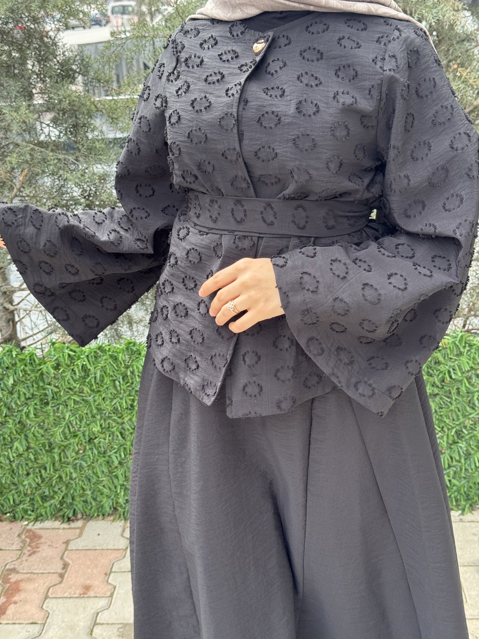 KOLLARI VE YAKASI ÇAKMA TAŞ DETAYLI BROKAR CEKET