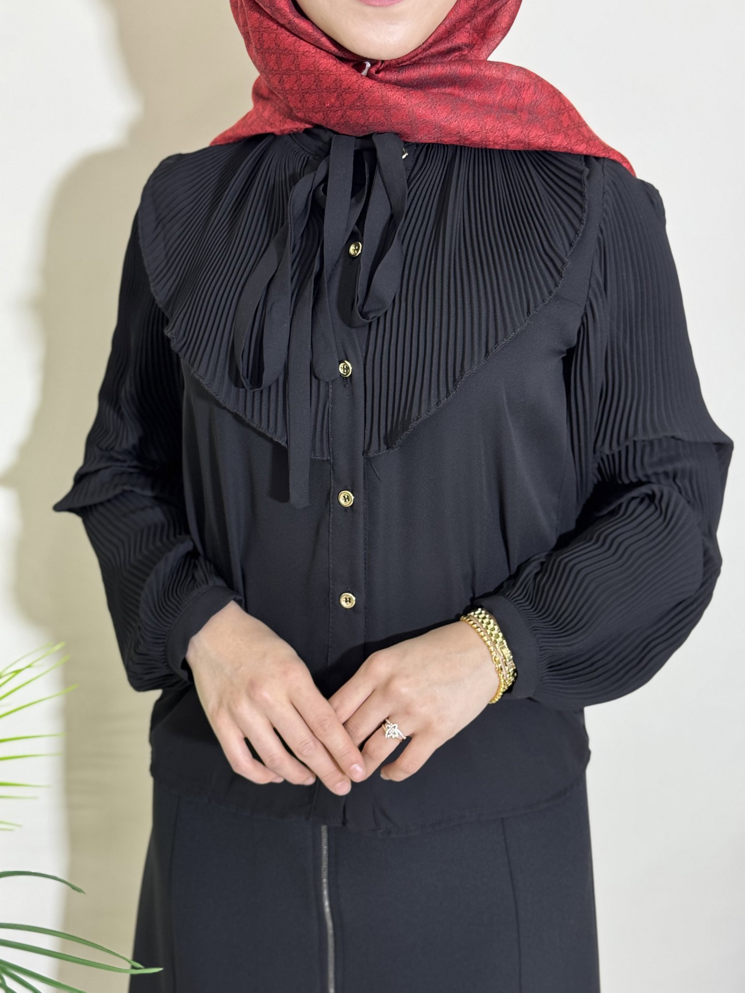 OMUZDAN GÖĞSE İNEN VOLAN DETAYI BULUNMAKTADIR.